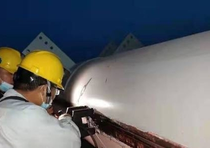 近日,化工行業(yè)事業(yè)部接到省內(nèi)某化工企業(yè)一批進(jìn)口設(shè)備監(jiān)檢任務(wù),該類設(shè)備容積大,參數(shù)高,介質(zhì)易燃易爆,是一種特殊結(jié)構(gòu)的壓力容器。接到檢驗(yàn)任務(wù)后,化工行業(yè)事業(yè)部抽調(diào)人員組成檢驗(yàn)小組,根據(jù)企業(yè)提供的資料制定詳細(xì)檢驗(yàn)方案,依據(jù)檢驗(yàn)標(biāo)準(zhǔn)精心準(zhǔn)備檢驗(yàn)設(shè)備,奔赴檢驗(yàn)現(xiàn)場(chǎng)。由于設(shè)備結(jié)構(gòu)特殊,體積較大,一臺(tái)設(shè)備測(cè)厚點(diǎn)就有316個(gè)之多,需要進(jìn)行無(wú)損檢測(cè)的焊縫有14條,相當(dāng)于4臺(tái)塔器的檢驗(yàn)量,由于企業(yè)安裝工期較緊,檢驗(yàn)人員從清晨進(jìn)場(chǎng)開始檢驗(yàn),中午也顧不上休息,頂著炎炎烈日繼續(xù)檢驗(yàn),一直加班到晚上九點(diǎn),歷時(shí)兩天完成了這批進(jìn)口設(shè)備的檢驗(yàn)任務(wù),并發(fā)現(xiàn)缺陷一處,消除了重大安全隱患。