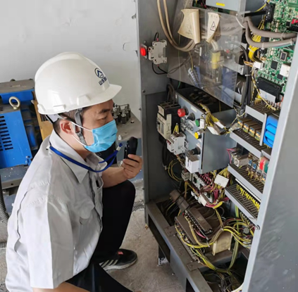 現(xiàn)場檢測人員檢測電梯控制柜項(xiàng)目