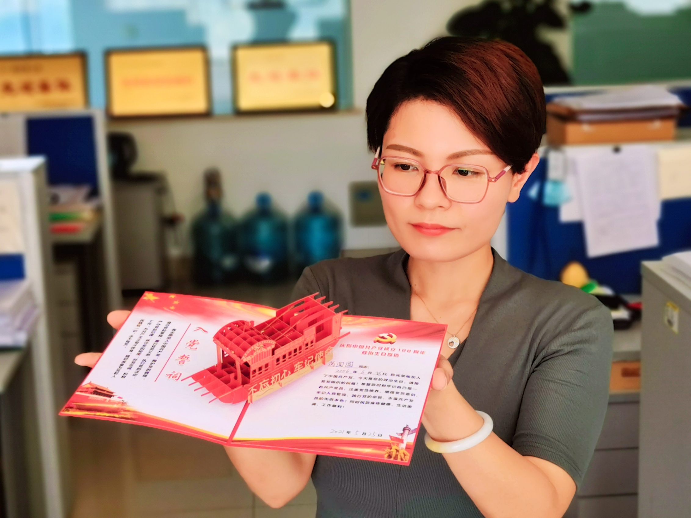 活動(dòng)中,支部書記向黨員講解了過“政治生日”的由來和意義,并向近期過生日的同志贈(zèng)送了“政治生日”賀卡。賀卡上南湖紅船栩栩如生,入黨誓詞熠熠生輝,寄語黨員們要時(shí)刻踐行黨的宗旨,履行黨員職責(zé)。共產(chǎn)黨員是一個(gè)特殊的政治身份,入黨是一個(gè)人從一個(gè)普通群眾上升到先鋒隊(duì)成員的標(biāo)志。加入了黨組織,就意味著政治生命的開始。過好“政治生日”,就是要求每一個(gè)黨員始終牢記自己的先鋒隊(duì)員的政治身份,始終保持一種政治生命的體驗(yàn),始終保持一種組織歸屬感和身份榮譽(yù)感,始終在理論上和實(shí)踐上具有超出普通群眾的先進(jìn)性,始終保持組織上的高度的純潔和高度的忠誠。這種來自黨員自身的思想認(rèn)同,能夠產(chǎn)生強(qiáng)大的行為自律力量。